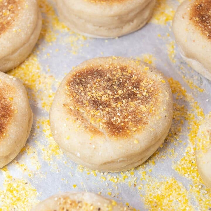 These Sourdough English Muffins are golden on the outside and tender on the inside. Perfect for breakfast, brunch, or a cozy snack.