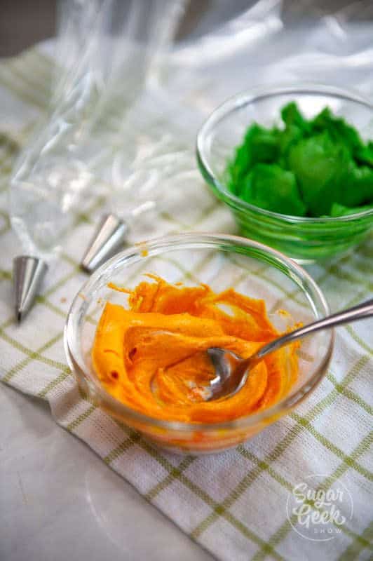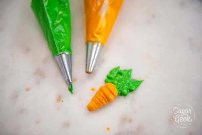 - Pipe some cute buttercream carrots on top (see video for instructions)