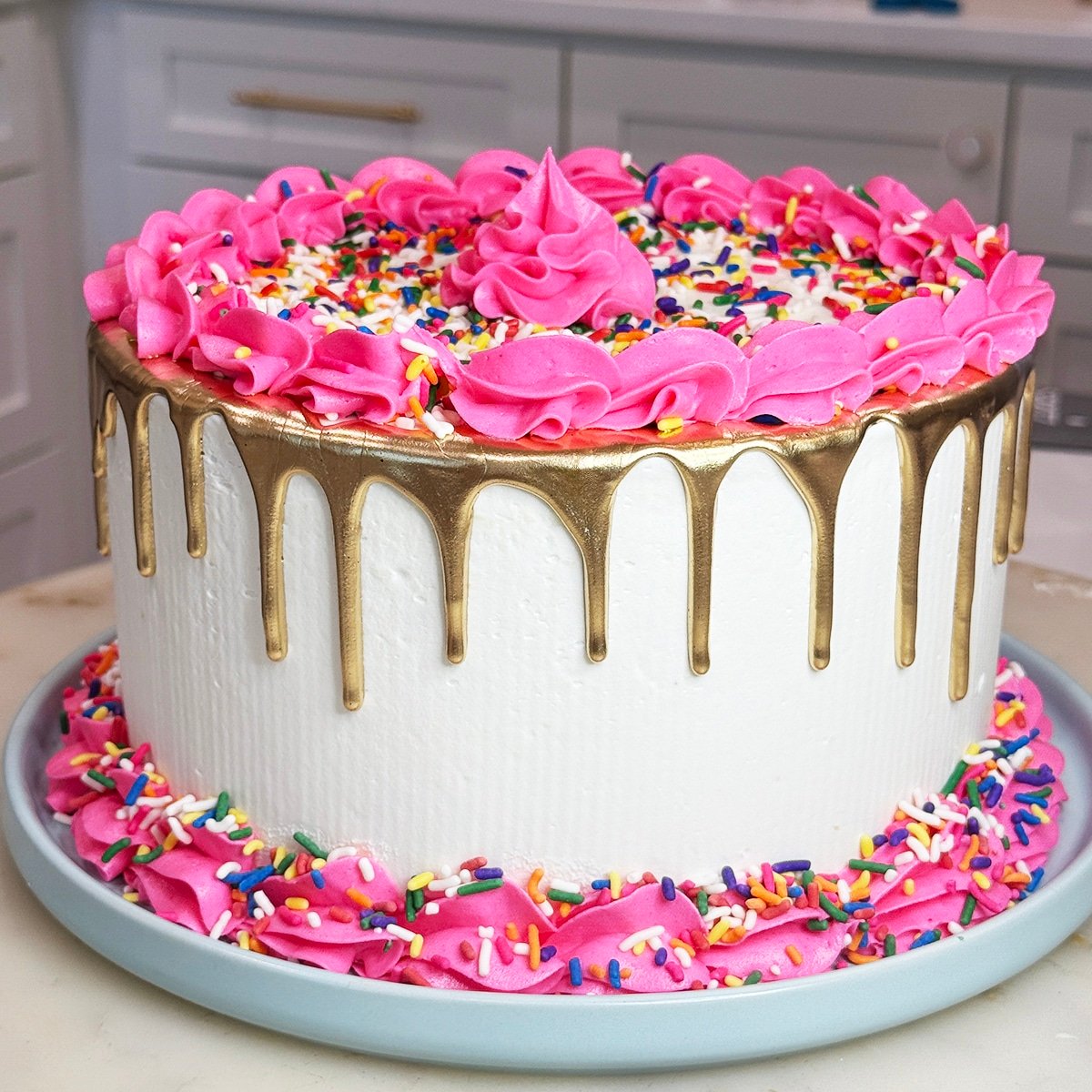 Gold drip cake has been one of my favorite ways to instantly elevate a design. There's just something about that glossy metallic edge cascading down a smooth buttercream cake that feels dramatic and expensive. And the best part? You don't need complicated chocolate blends or specialty products. This gold drip hack uses water ganache and a simple trick with luster dust to create a bold, metallic drip that actually shines.