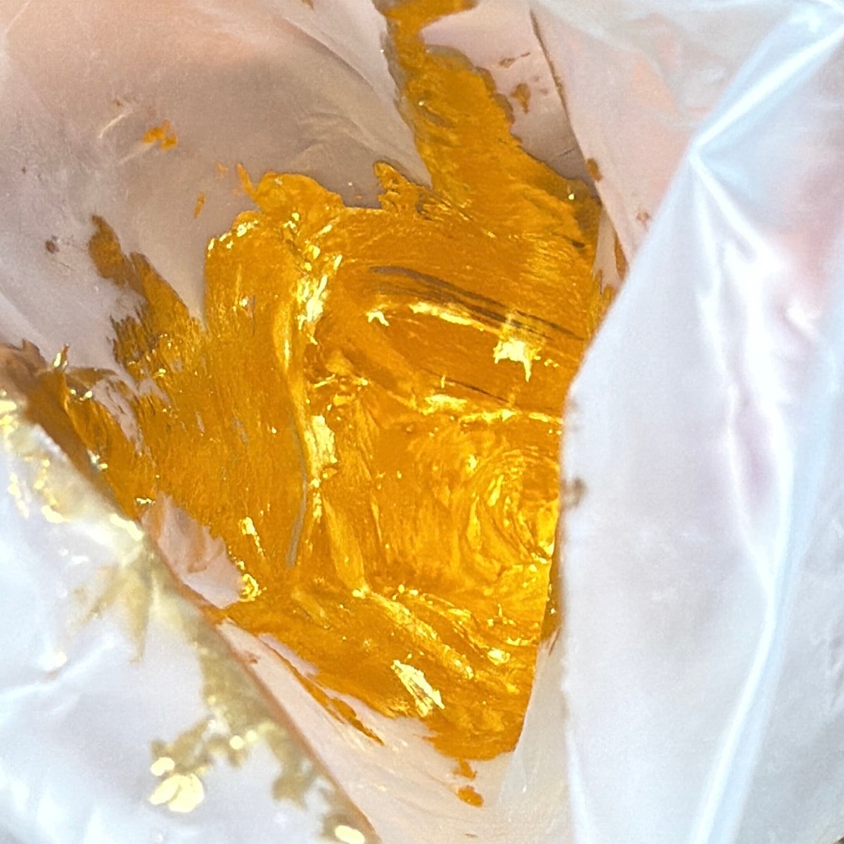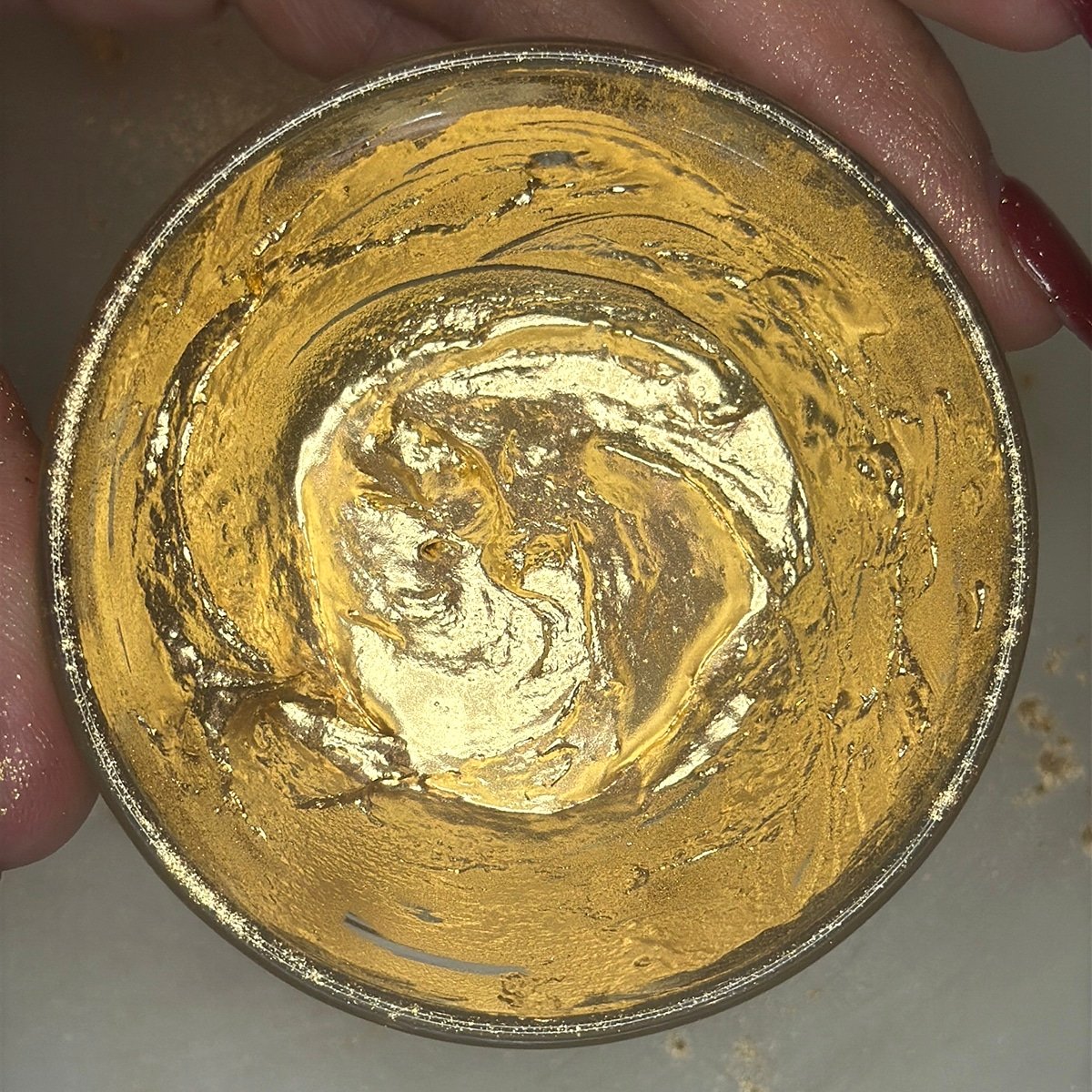 - Mix together your gold dust and a few drips of neutral oil to make a thick paste.