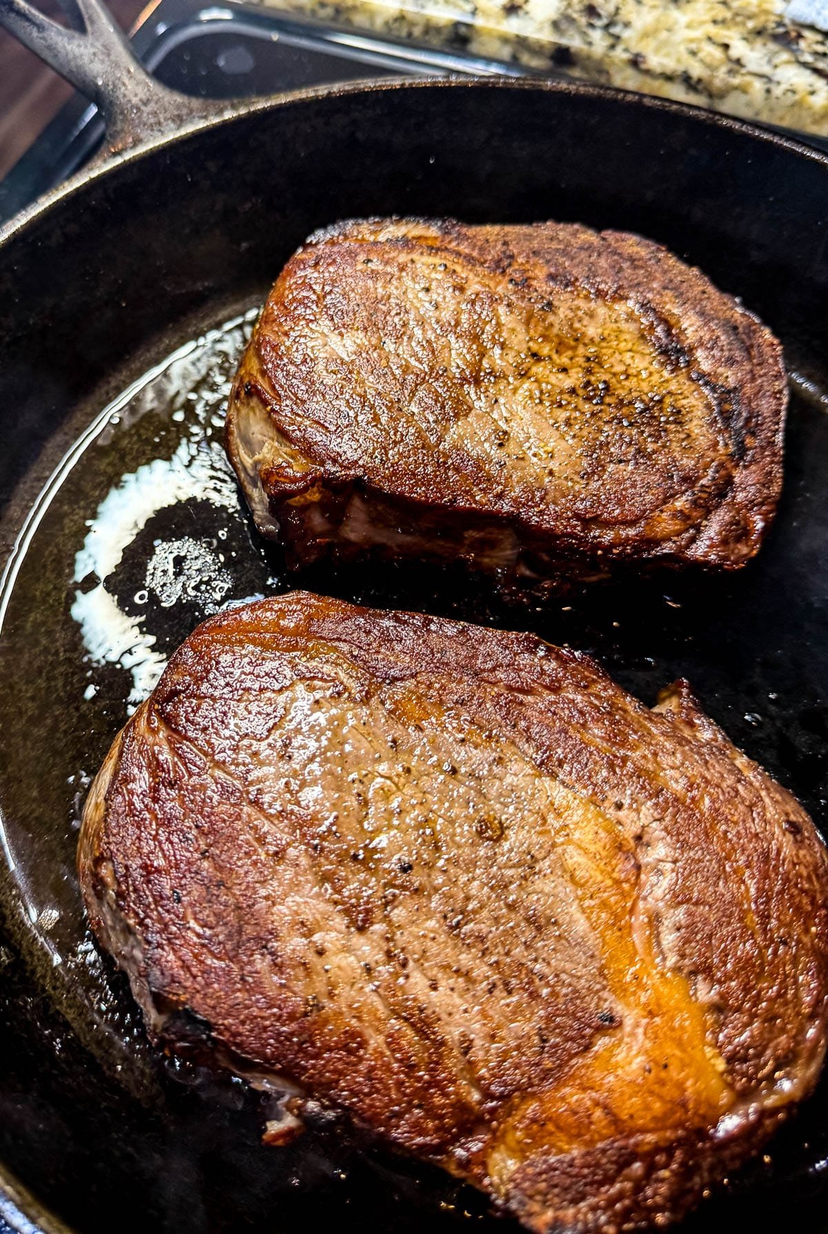 - Freshly cracked black pepper adds heat and texture to the crust. Pepper burns at high heat, but when added right before cooking, it creates that classic steakhouse flavor. You can skip it if you’re sensitive to bitter notes, but I personally love it. I also add in some granulated garlic but that's personal preference.