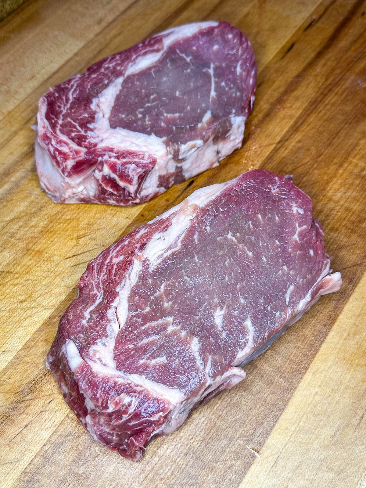 I’ve had incredible Choice ribeyes and disappointing Prime ones—always trust your eyes more than the label. I usually get our steaks from Costco because the quality is really good and fairly priced, and I stock up when they are on sale.