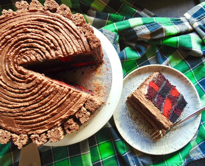 Although this cake took a lot of work, it was definitely worth it, and I would make it again if I got the opportunity. Fantastic tutorial, and show-stopping inside. Thank you for putting in the brain power to figure out how to make a true buffalo plaid inside!