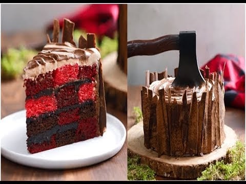 How To Make A Lumberjack Cake With Buffalo Plaid Cake Inside And A Gravity Defying Chocolate Axe On Top!