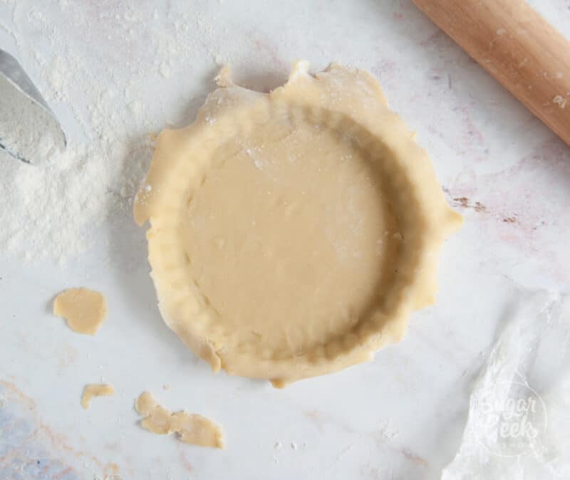 - Roll your rolling pin flush across the top of the tart shell to remove the excess dough. Or you can use a paring knife to cut off the excess evenly. Squish together the leftovers and save them to make another tart.