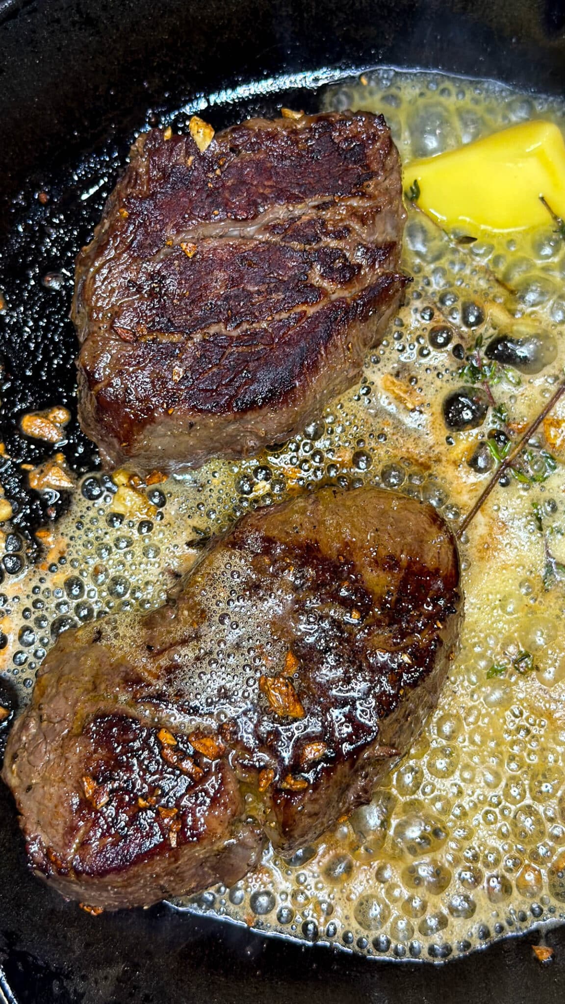 - Unsalted Butter & Aromatics: Fresh thyme, smashed garlic, and butter. The butter carries these flavors into every crack and crevice of your finished filet.