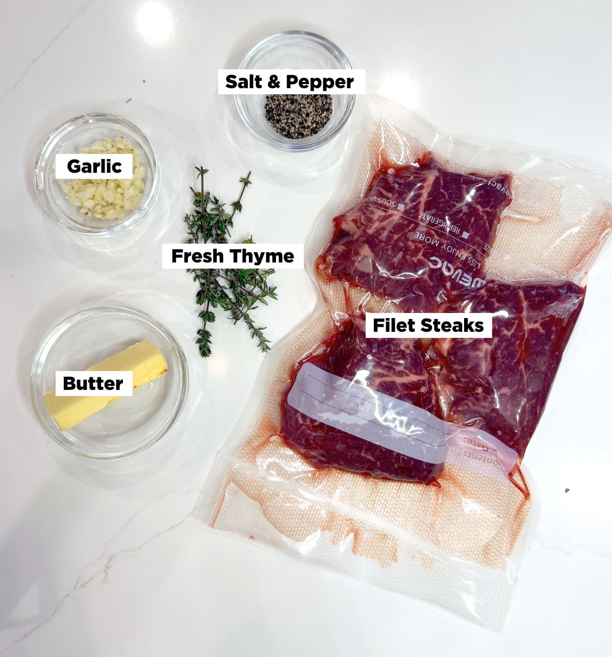 - Twine is Your Friend: Filet mignon is a very soft muscle. To keep that perfect "steakhouse circle" shape, tie a piece of butcher's twine around the circumference of each steak before bagging. This holds the muscle fibers together during the long cook.