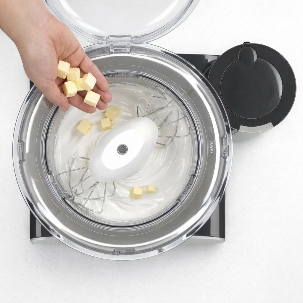 Using butter that is too cold or too warm. Cold butter breaks into chunks that don't incorporate smoothly. Melted butter causes the buttercream to collapse. Butter should be softened to the point where it holds its shape but gives easily when you press your finger into it, similar to the texture of soft clay.