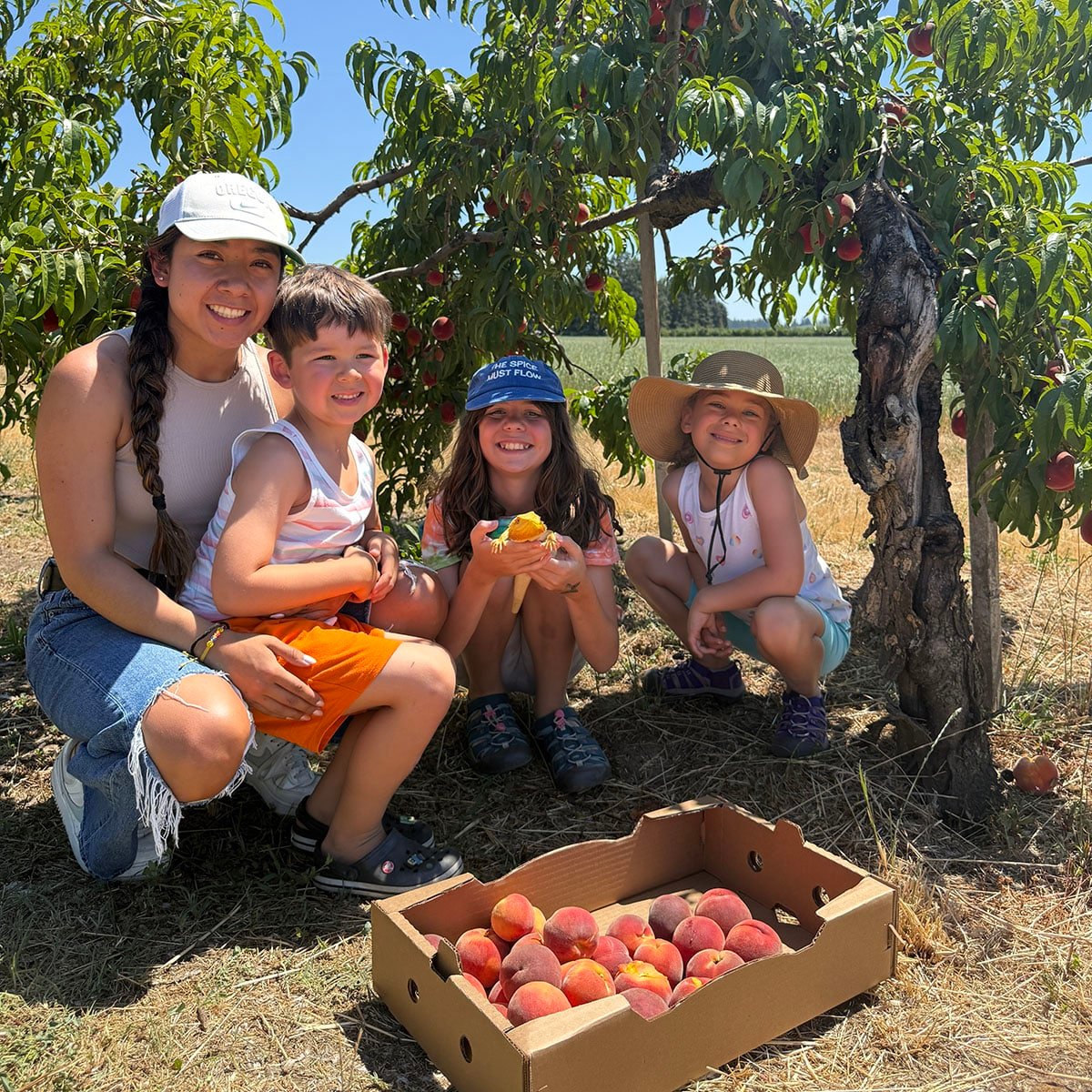 One of my favorite fruits is peaches. When I was growing up we had one singular peach tree in our backyard, and we were NEVER allowed to pick those fruits. We rarely got more than a dozen peaches, but every now and then, we'd get more, and my sisters and I MIGHT be lucky enough to get one.