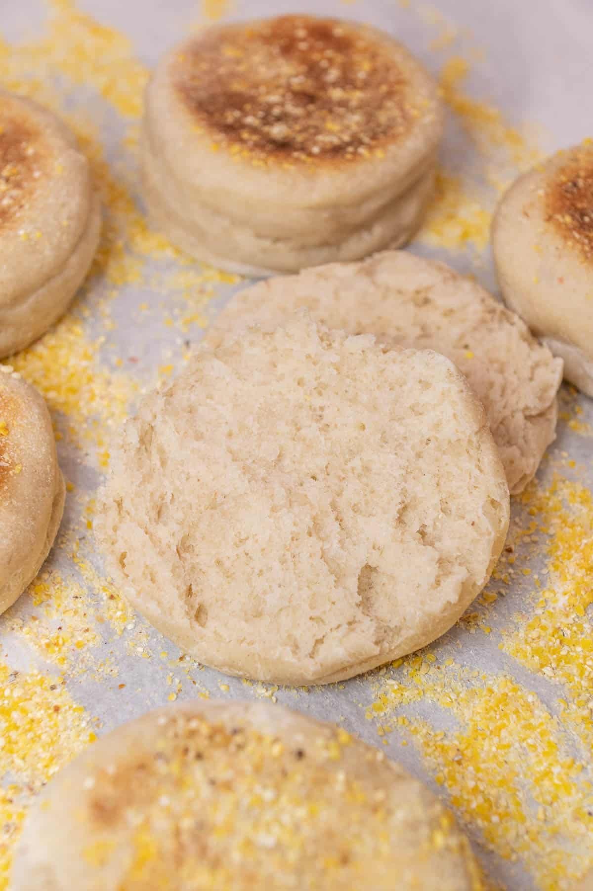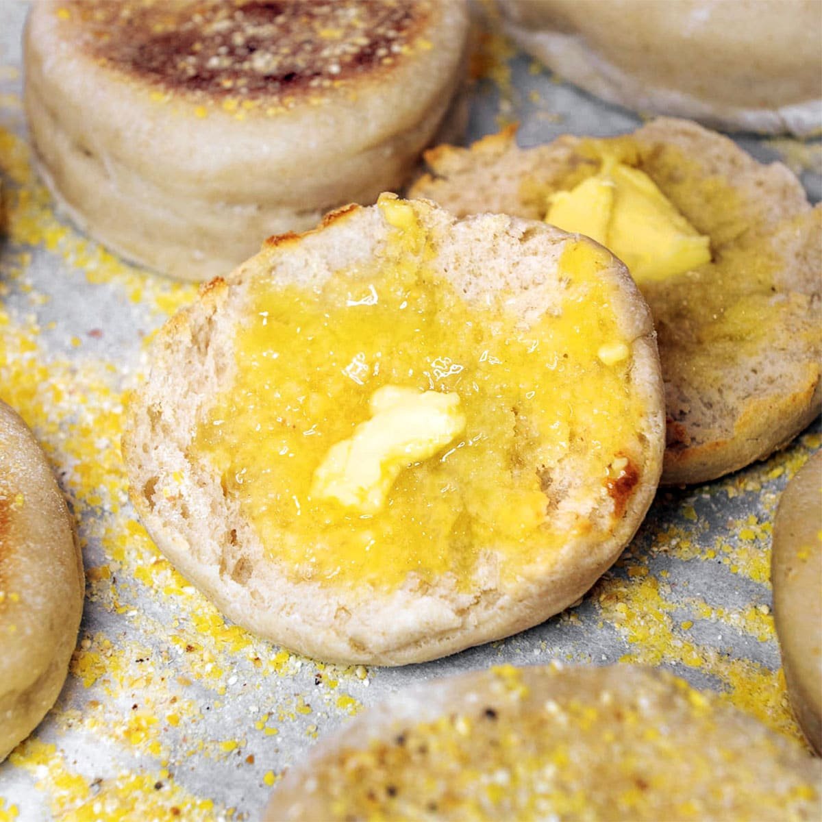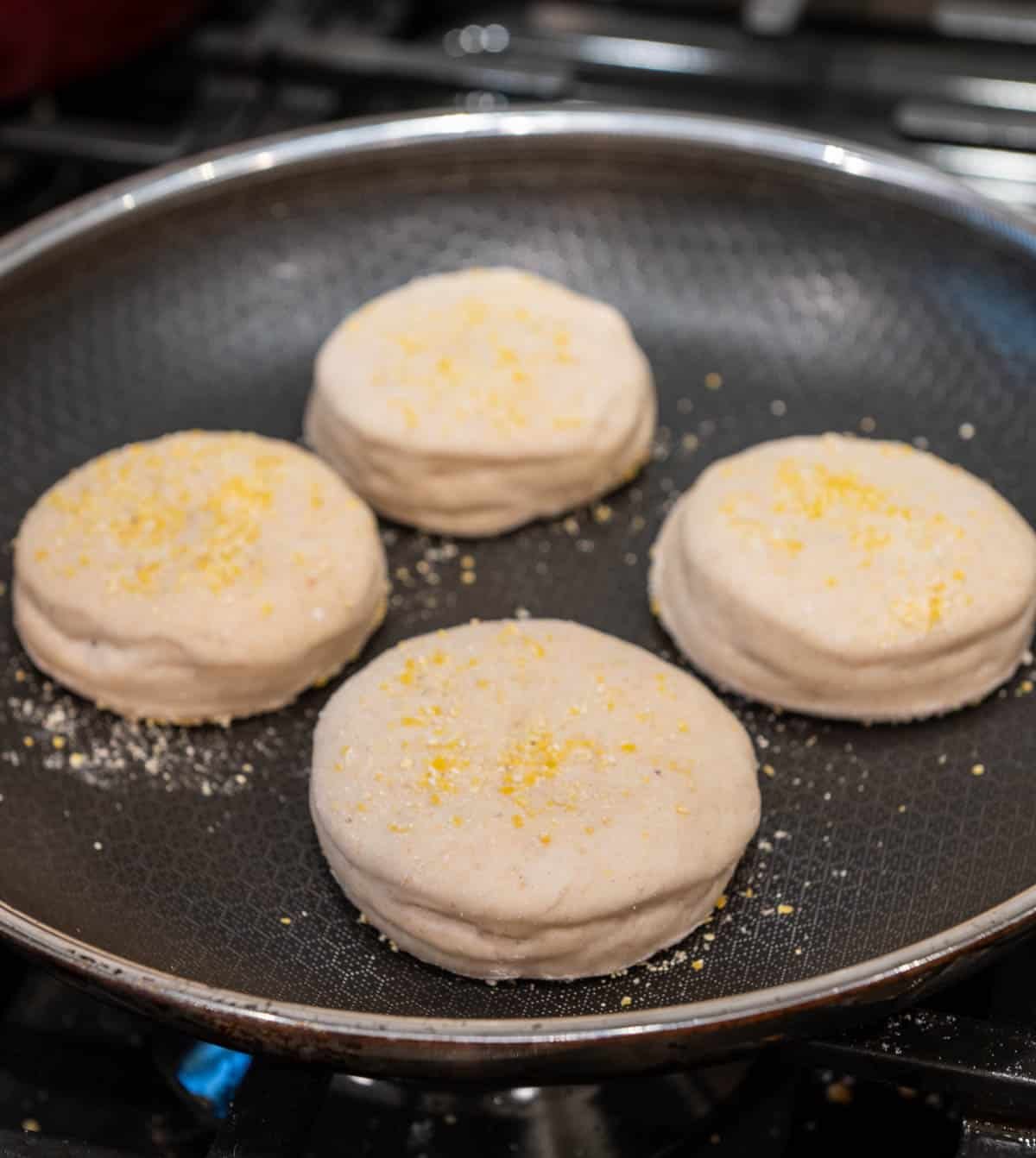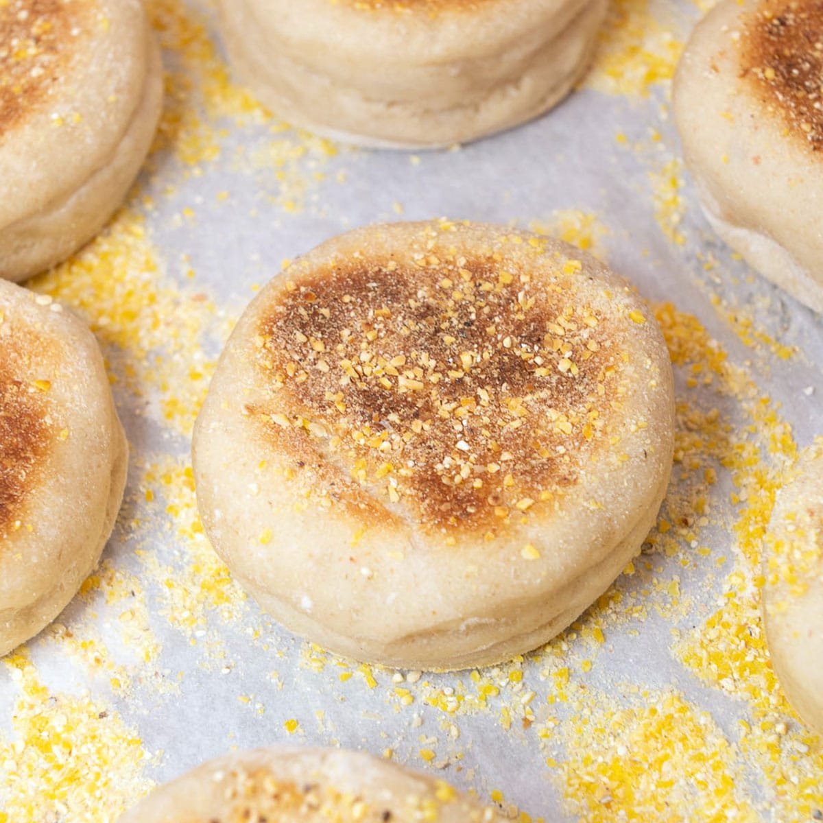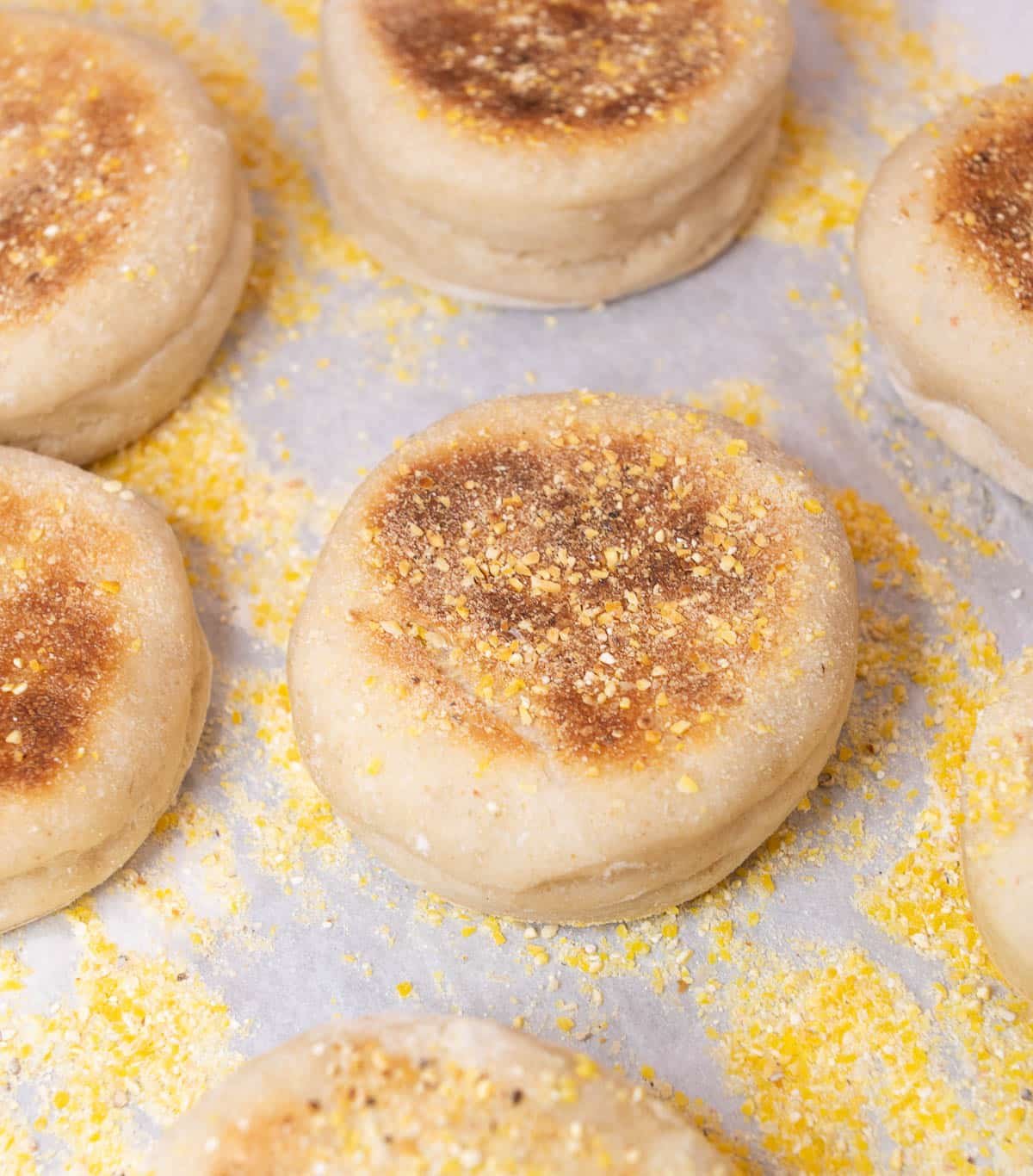 - Don’t skip the cornmeal: Make sure to coat your muffins with cornmeal using baking sheet. This prevents sticking and gives texture.