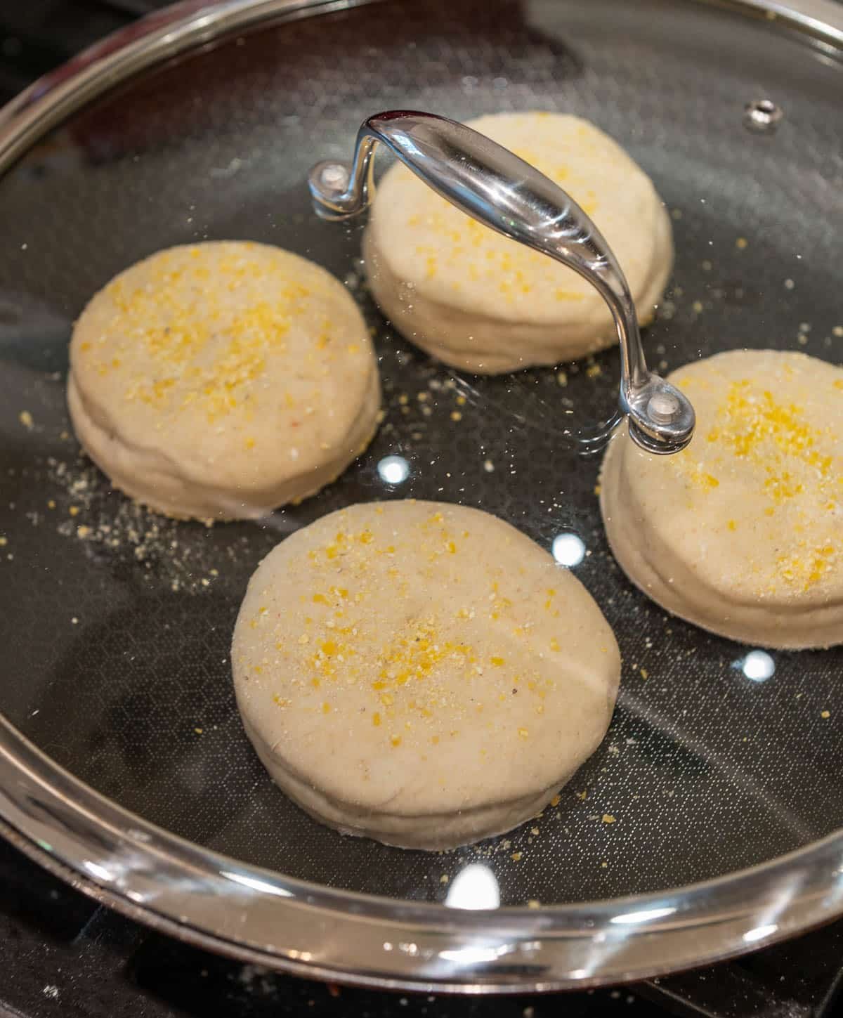 Skillet with Lid - A large skillet with a lid is essential for cooking the muffins low and slow, trapping steam to create a tender, golden crust. We prefer HexClad skillets for their hybrid stainless steel and nonstick surface, which allows for even heat distribution, perfect browning, and easy cleanup. Another great option would be a cast iron skillet.