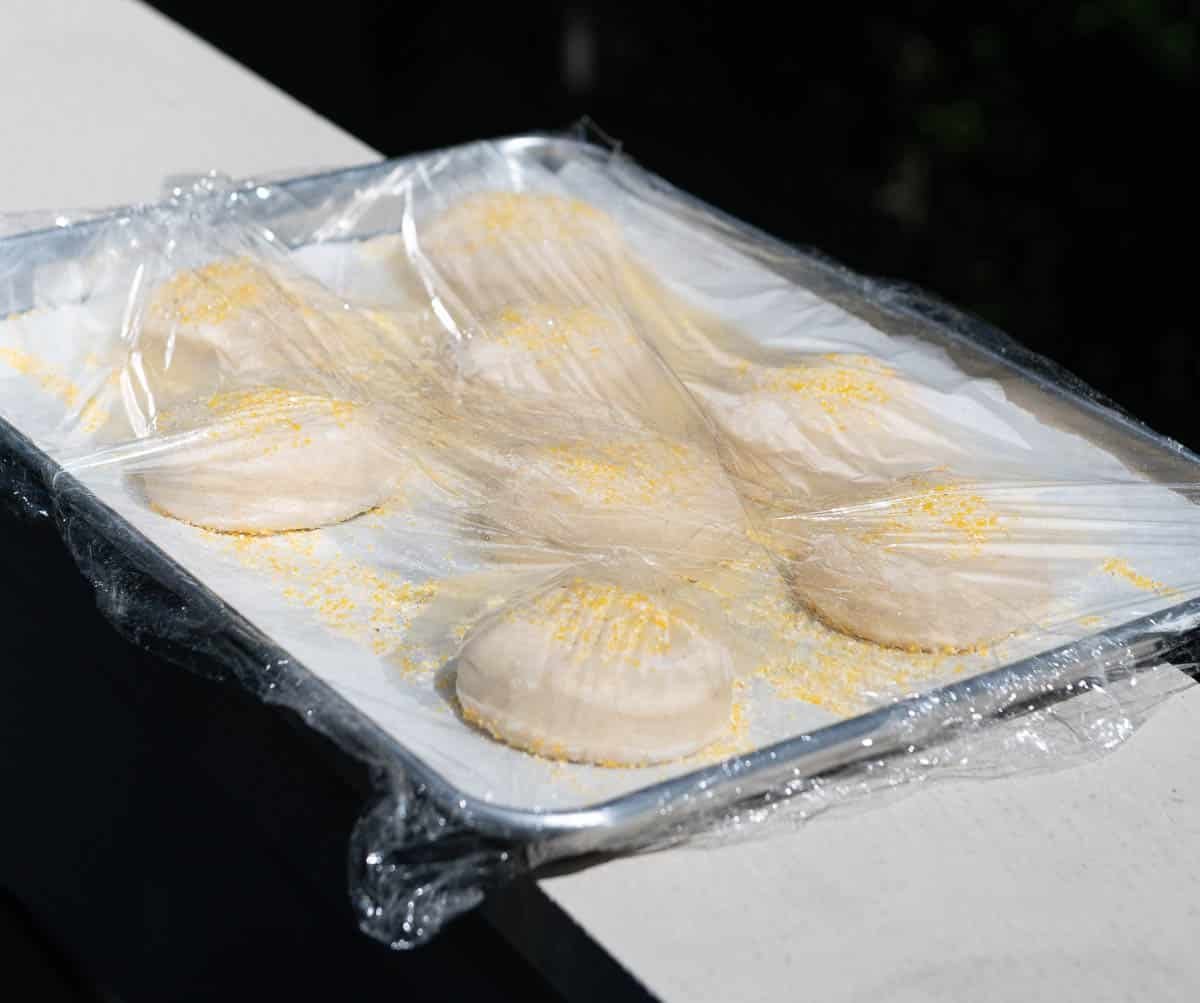 - Cover and let rest in a warm area until it has doubled in size. This is best to do overnight.