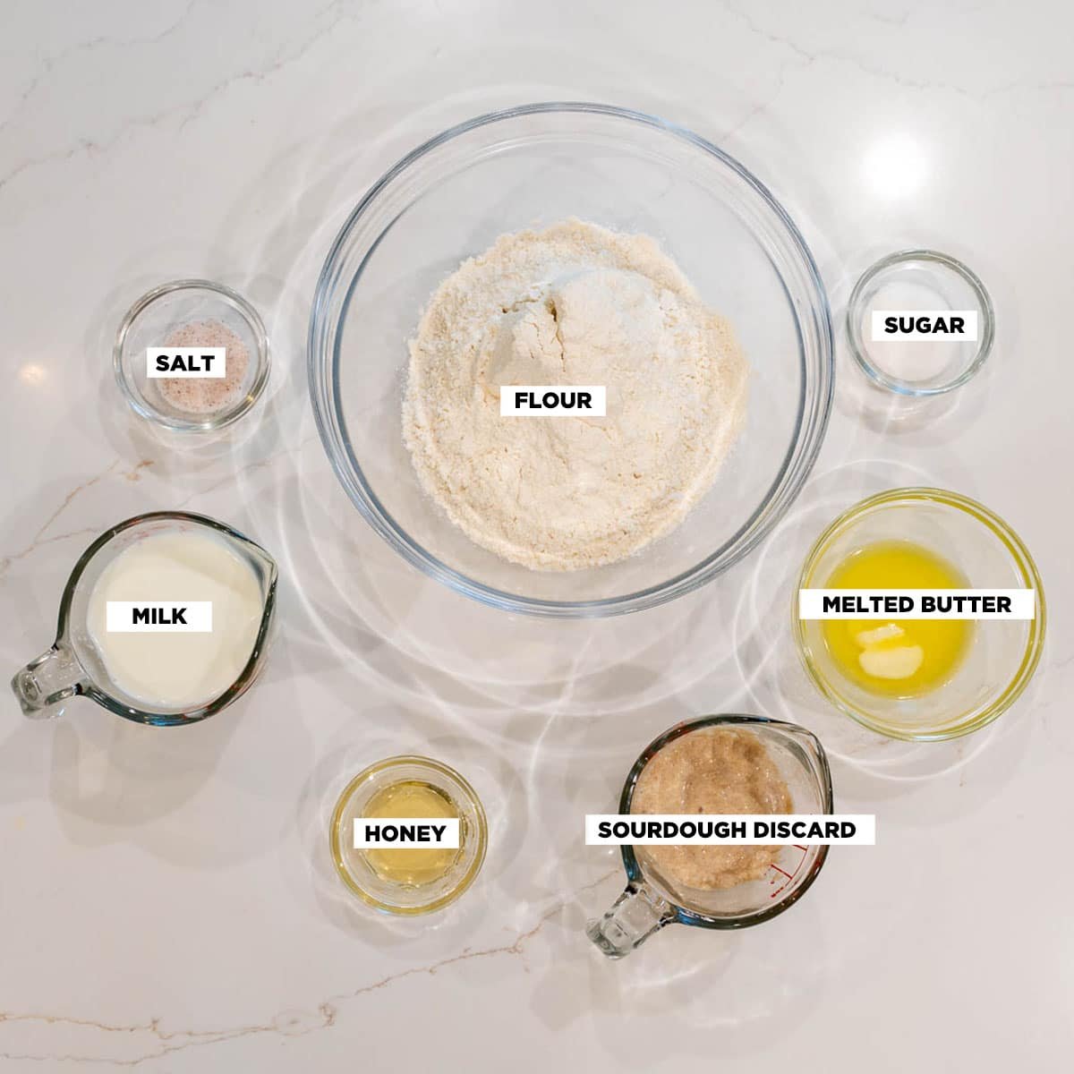 Here’s everything you’ll need to make these Sourdough English Muffins. This simple recipe turns everyday ingredients into a homemade breakfast favorite.